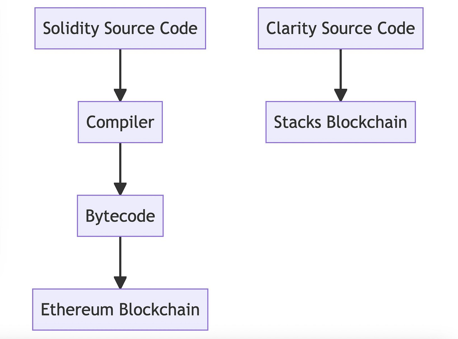 In Clarity, source code is interpreted directly on the blockchain. There is no compilation step that could hide the logic or introduce bugs.