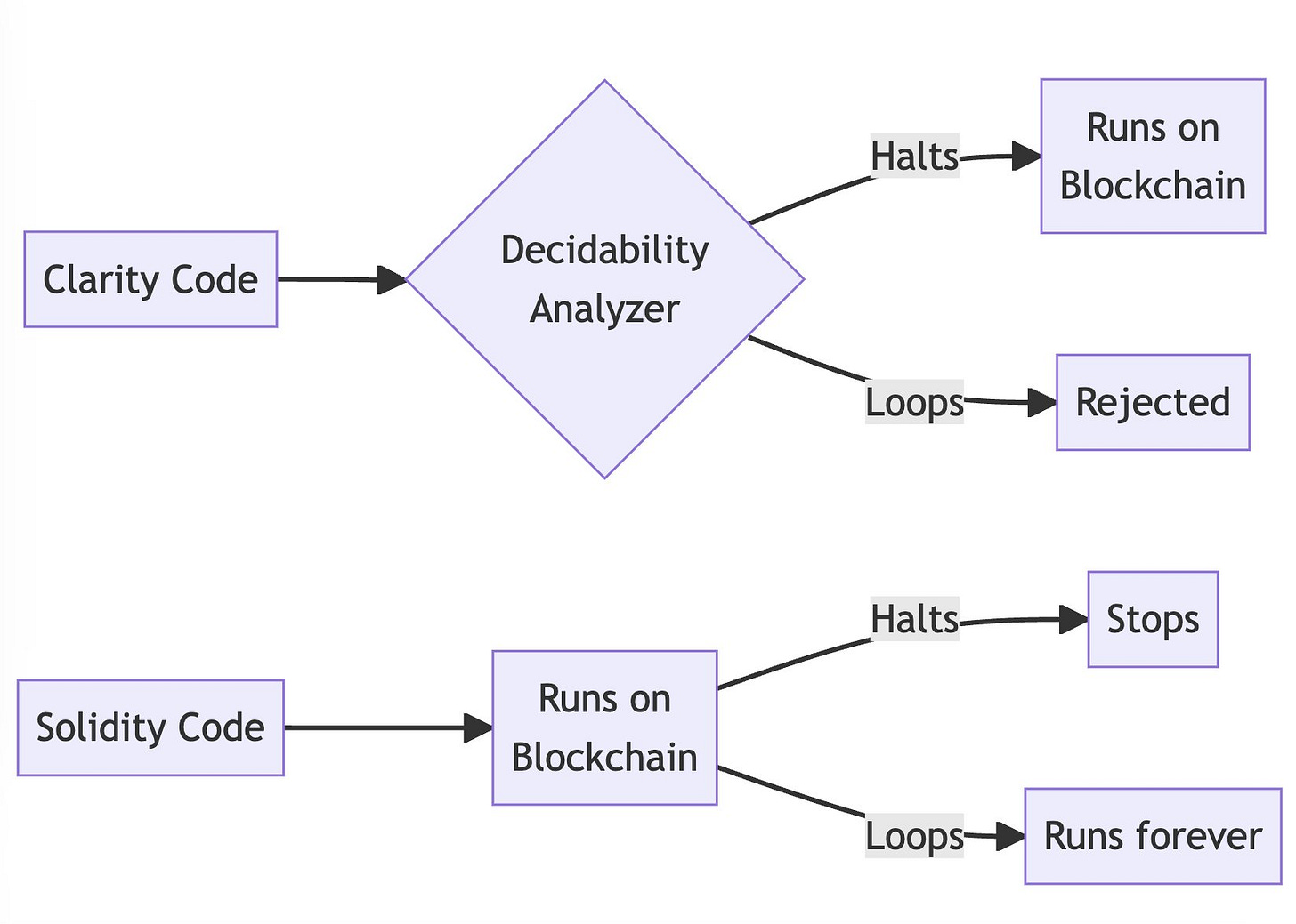 Clarity is a decidable language, meaning programs are guaranteed to halt. This avoids potential infinite loops So What is decidable language? Can you give an example? -> Sure
