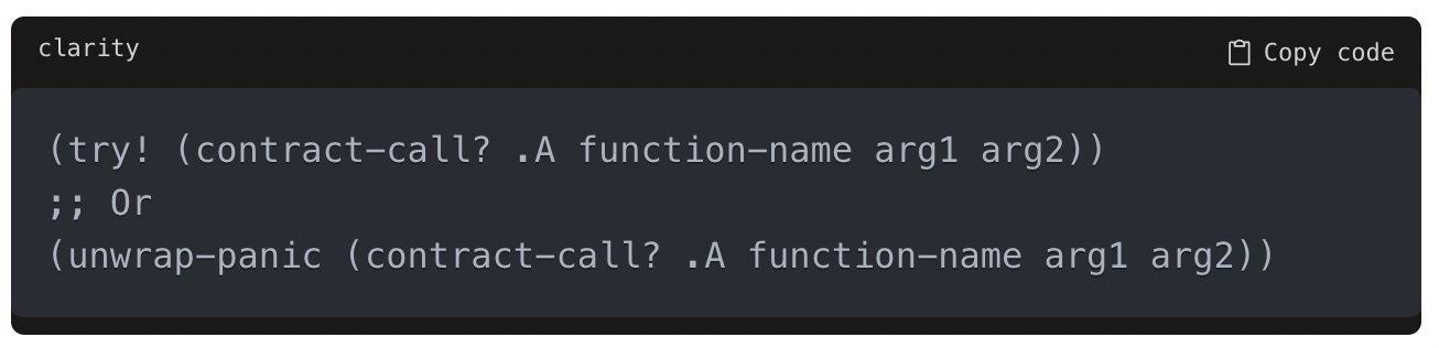 This allows calls to fail silently if the developer doesn't check properly. In Clarity, contract calls must be made using functions like contract-call? which return a response type: